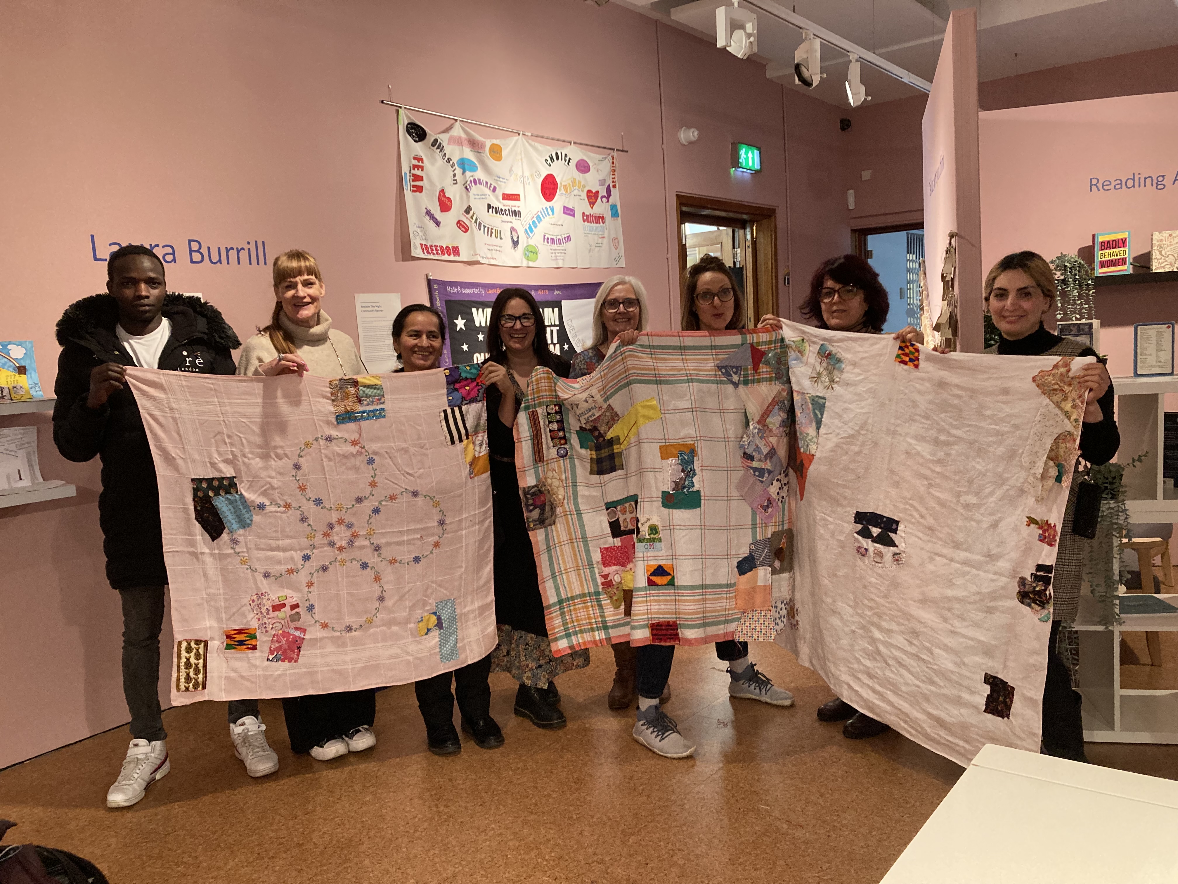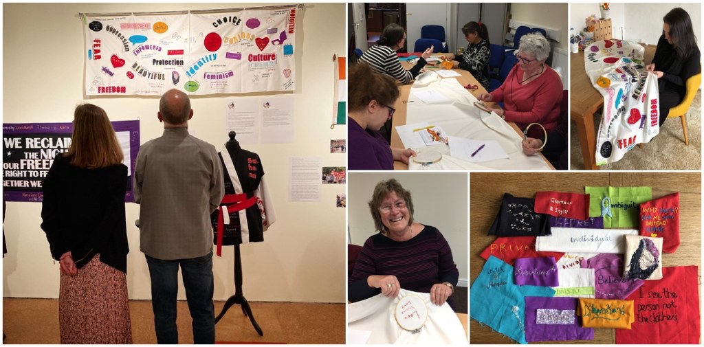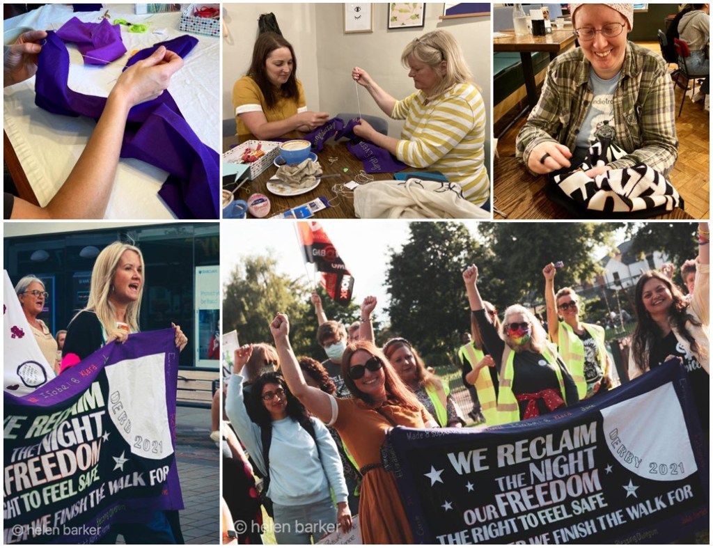 Throughout June Women from across Derbyshire came together to create an incredible banner to be carried at the 2021 Reclaim the Night March through Derby city center. Stitch sessions were held at a variety of venues from parks and gardens to cafes and dining rooms. Collaborative sessions such as these always provide an incredible opportunity to explore and discuss difficult subjects. Whilst not all participants were able to join the march women were able to make their voices heard through the act of stitch.