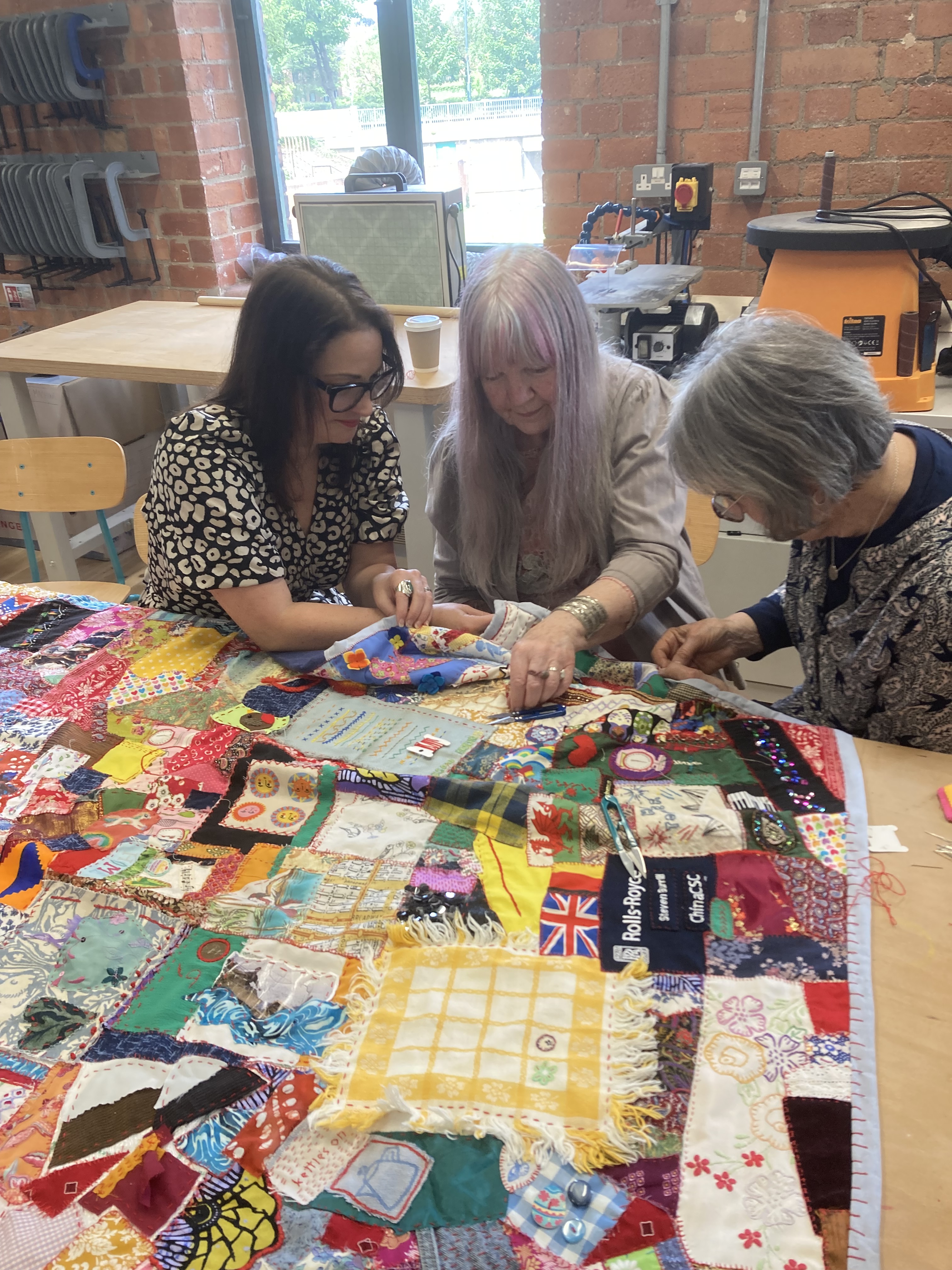 Quilts of Connection was a response to Derby Museum & Art Galleries’ exhibition History makers: Unfolded. The exhibition acted as a provocation for conversation, asking the people of Derby to reflect upon the stories already told within the museum space and importantly what stories are missing and should be told. Through a series of workshops, the people of Derby and Derbyshire collaborated to create a giant slow stitched patchwork. This work shares the personal stories of the people of Derby; their pride in the place they call home, their connections to pace, their journey here and their contribution to the vibrant place we call home.
