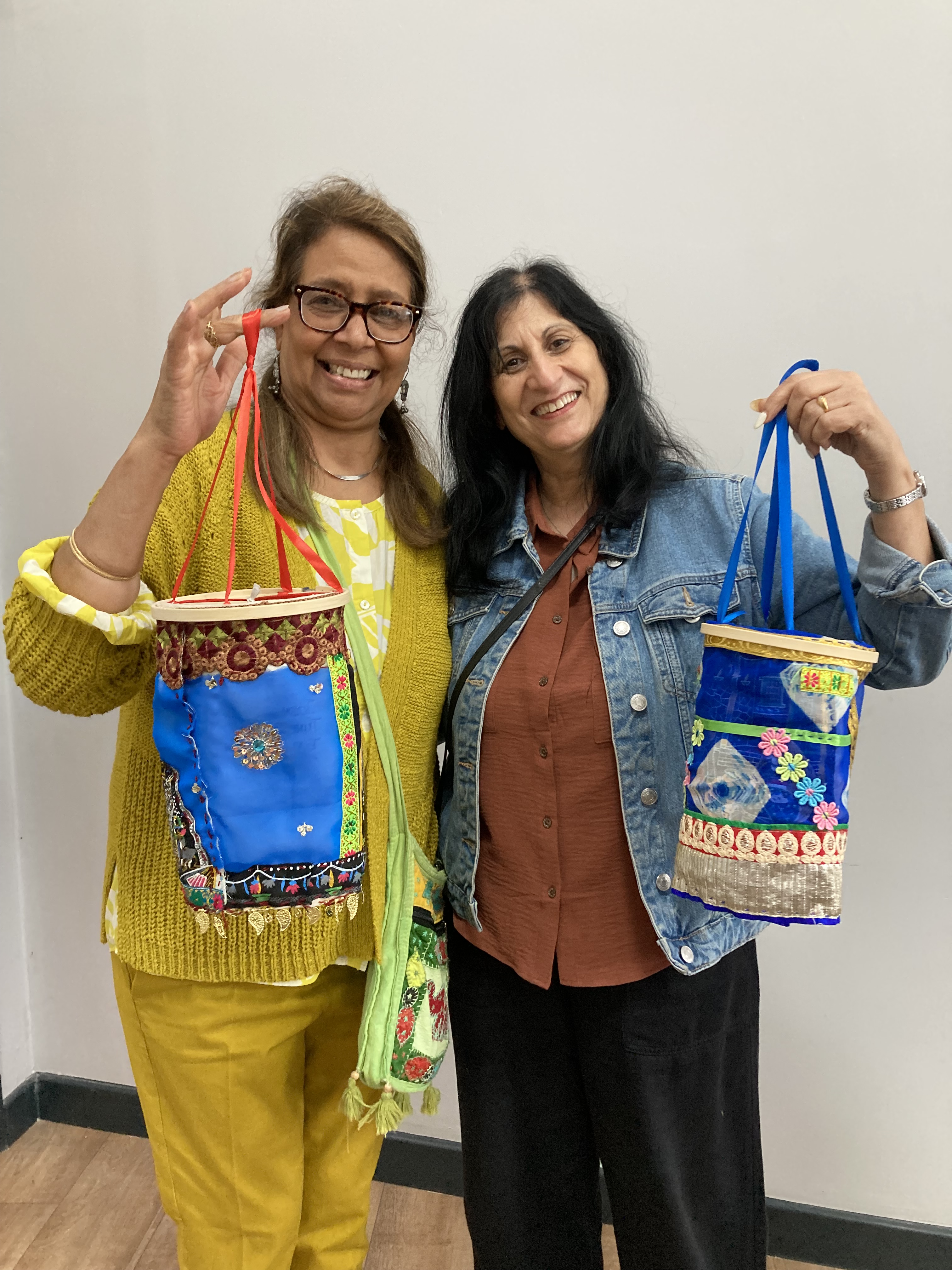 2024 marked 40 years of Diwali celebrations in Leicester. During this time celebrations have grown from small festivities in people’s homes to a large-scale festival that takes over the Belgrave Neighbourhood. This series of workshops for Inspirate Arts provided members of Leicester’s diaspora community, residing in assisted living, an opportunity to reminisce and share their personal experiences of Diwali, the celebrations in Leicester and how they have changed over the years. Participants were guided in the process of crafting their own slow stitched ‘Story Lantern’ in response to their experiences of celebrating Diwali.
