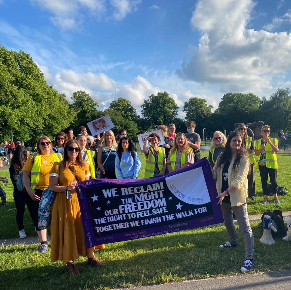 June 2021: A collaborative stitching project bringing women from across Derbyshire together to create a banner for the 2021 Reclaim the Night march in Derby city centre. Through shared stitch sessions in parks, cafés and homes, participants found space for conversation, solidarity and collective voice.